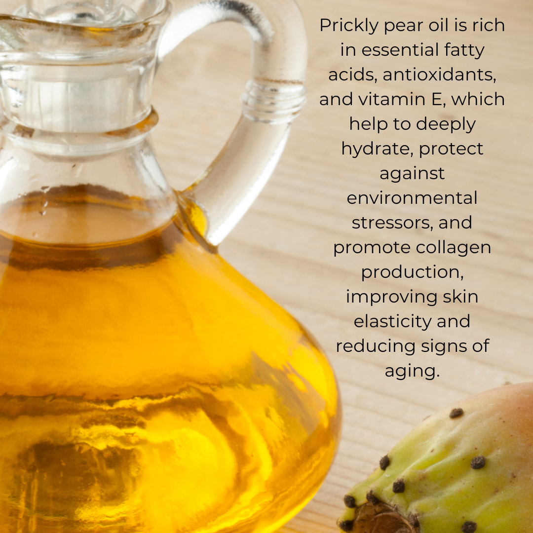 A potent source of vitamins E and K, prickly pear oil deeply hydrates and helps to restore skin’s natural luminosity.